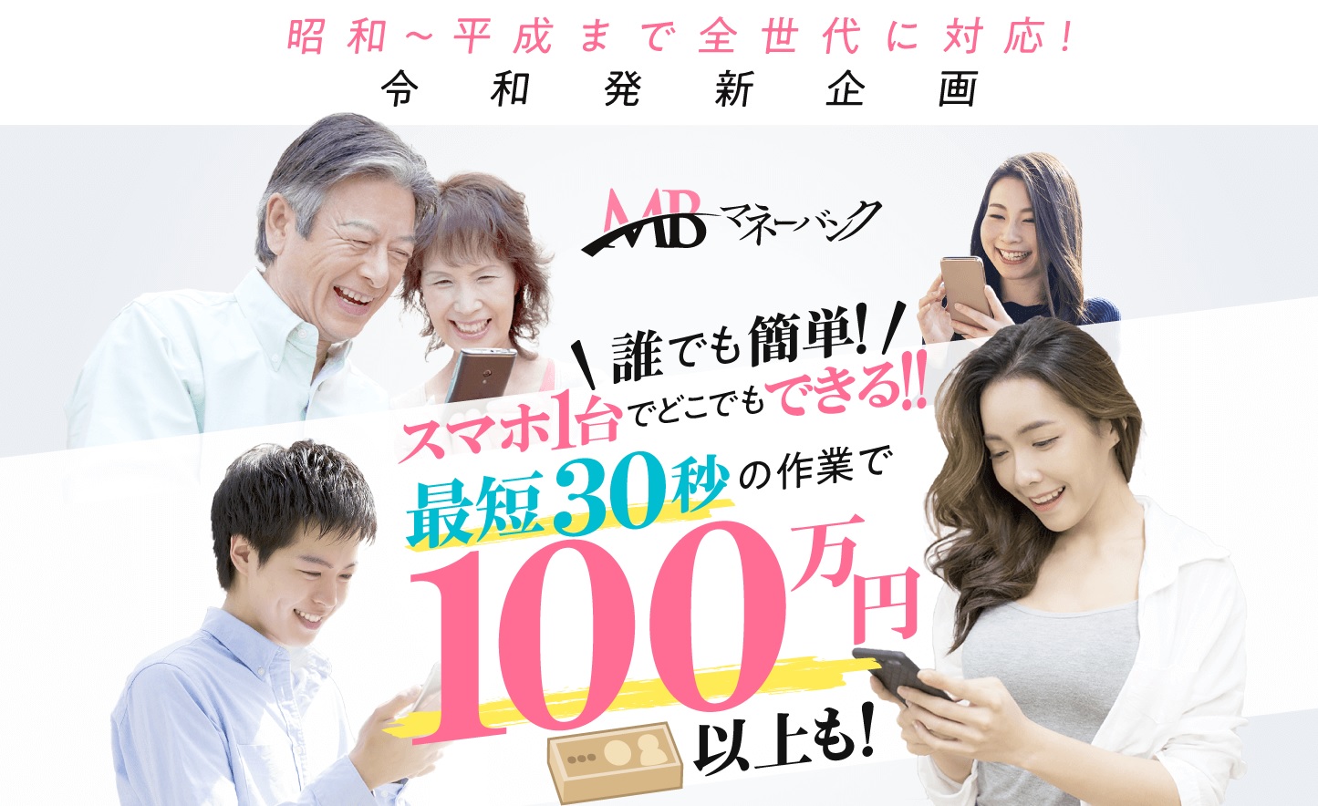 これによると、鹿久保光宏のマネーバンクは「最短30秒で100万円以上!」というもの。